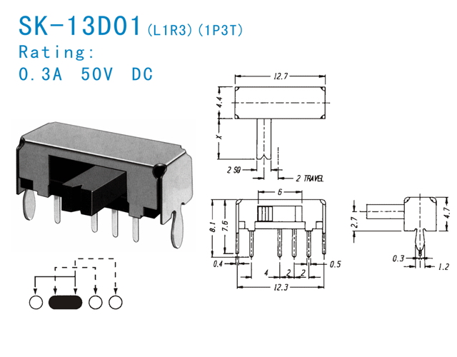 5、拨动开关亦称作贴片拨动开关、插件拨动开关、滑动开关、单极双位拨动开关、单极三位拨动开关、双极双位拨动开关、双极三位拨动开关等;